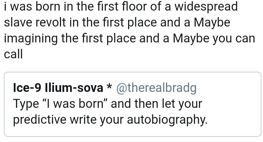 “type ‘ i was born’ and then let your predictive write your autobiography.”